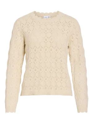 Vila Trui Vilowen L/s Pointelle Knit Top/pb 14112045 Birch Dames