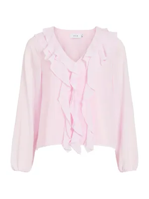 VILA – VIANE L/S V-NECK FRILL TOP – NOOS – Dames – Blouses