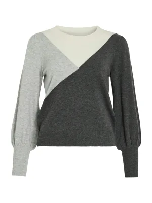 VILA Trui ‘VIKerry’ donkergrijs / grijs gemêleerd / parelwit