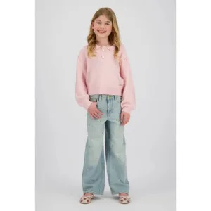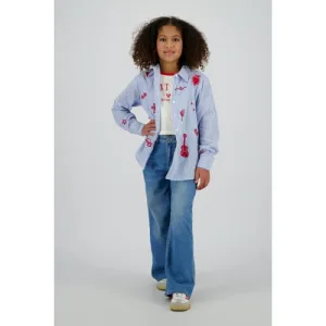 Vingino wide leg jeans wide leg jeans met hartjes light blue denim