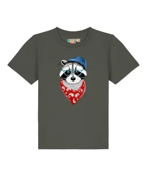 watabout.kids Shirt ‘Waschbär’ grijs / donkergroen / robijnrood / wit