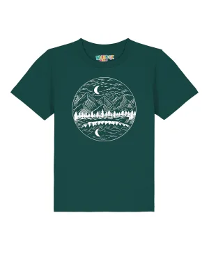 watabout.kids Shirt ‘Mountains By Night’ donkergroen / wit