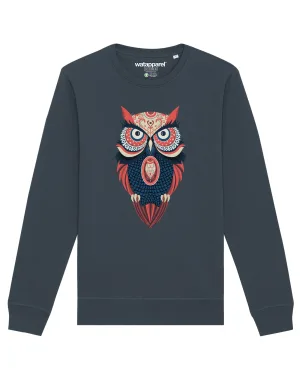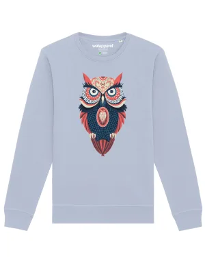 Watapparel Sweatshirt ‘Colorful Owl’ duifblauw / bruin / watermeloen rood / wit