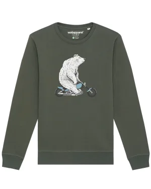 Watapparel Sweatshirt ‘Bär auf Bike’ lichtblauw / kaki / zwart / wit