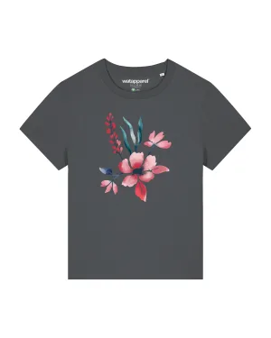 Watapparel Shirt ‘Roses Are Red’ camel / donkergroen / kreeft / wit