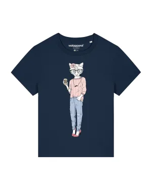 Watapparel Shirt ‘ Astronaut on T-Rex ‘ donkerblauw / zwart / wit