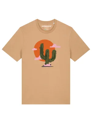 Watapparel Shirt ‘Kaktus Im Sonnenuntergang’ beige / donkergroen / oranje / rosa