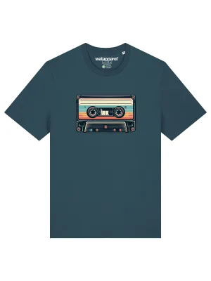 Watapparel Shirt ‘Retro Kassette’ lichtblauw / antraciet / oranje / wit