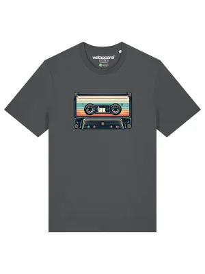 Watapparel Shirt ‘Retro Kassette’ lichtblauw / antraciet / oranje / wit