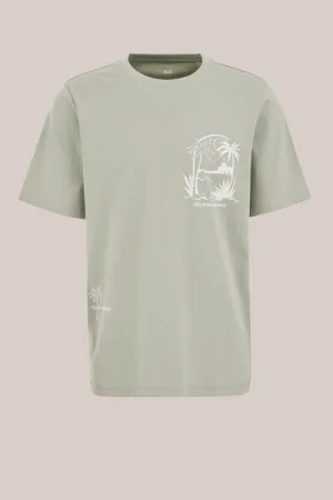 WE Fashion – Jongens oversized T-shirt met tie-dye en print – Oversized – Olijfgroen – Katoen –