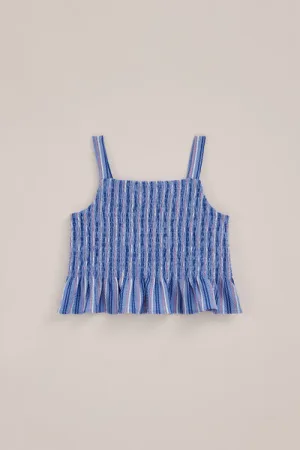 WE Fashion – Meisjes gestreepte singlet met structuur – Slim Fit – Blauw –