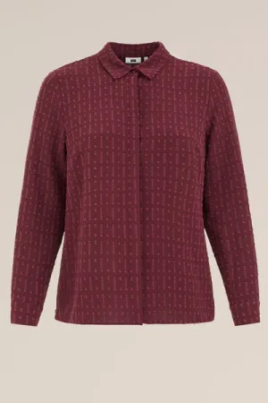 WE Fashion – Dames Blouse met structuur – Curve – Regular fit – Donkerrood – Plus Size