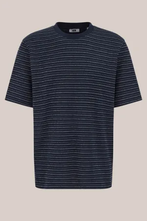 WE Fashion – Heren relaxed fit T-shirt met structuur – Relaxed Fit – Donkerblauw – Katoen –