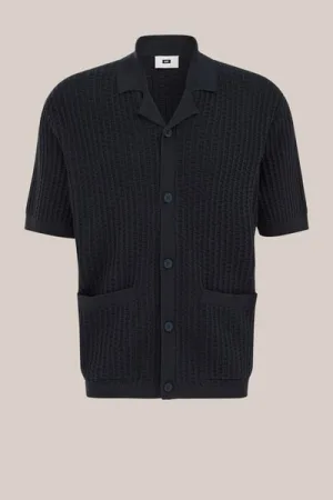 WE Fashion – Heren regular fit gebreide polo met structuur – Regular fit – Donkerblauw – Katoen –