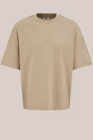 WE Fashion – Heren boxy fit T-shirt – Boxy Fit – Beige – Katoen –