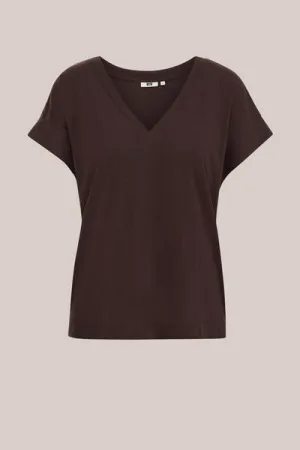 WE Fashion – Dames T-shirt met V-hals – Curve – Regular fit – Donkerbruin – Viscose – Plus Size
