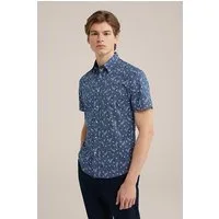 WE Fashion – Jongens seersucker overhemd met print – Regular fit – Donkerblauw – Katoen –