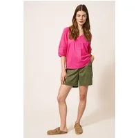 White Stuff Phoebe Jersey Mix Top Bright Pink
