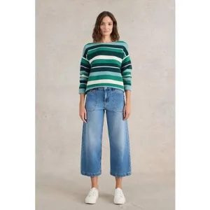 White Stuff Garcie Stripe Zip Neck Jumper Chambray Blue