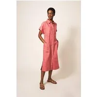 White Stuff Reno Linen Shirt Dress Mid Plum