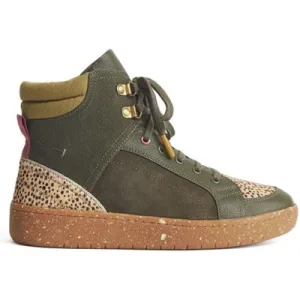 White Stuff Leather Suede Hi Top Trainer Khaki Green