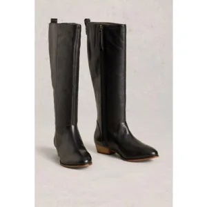 White Stuff Enya Leather Fur Knee Boot Pure Black