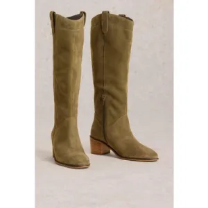 White Stuff Izzy Suede Knee High Boot Khaki Green