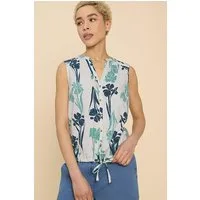 White Stuff Tulip Jersey Sleevele Shirt White Printed