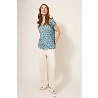 White Stuff Tea Woven Frill Top White Printed