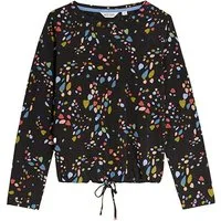 White Stuff Tasha Tie Hem Top Black Printed