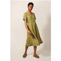 White Stuff Ivy Linen Midi Dress Green Print