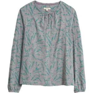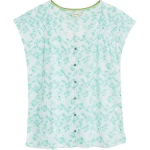 White Stuff Rosie Rib Jersey Shirt Teal Print
