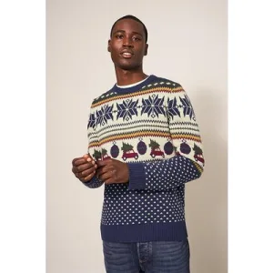 White Stuff Arundel Geo Fairisle Shawl Navy