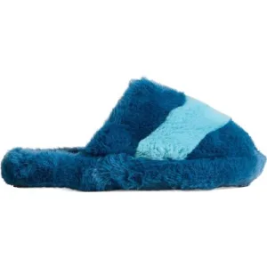 White Stuff Faux Fur Mule Slipper Teal Multi