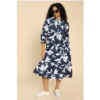 White Stuff Mayra Tiered Shirt Dre Navy Printed