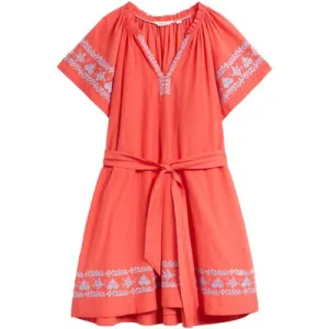 White Stuff Anna Cotton Embroidered Dress Orange Multi