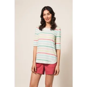 White Stuff Rosie Rib Jersey Shirt Green Print