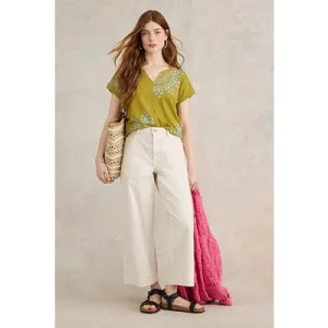 White Stuff Lucinda Eco Vero Wide Trouser Green Printed