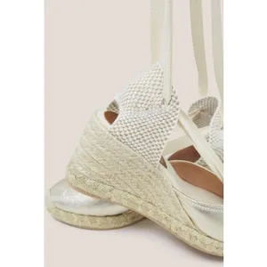 White Stuff Tie Leather Espadrille Wedge Gold Tone Metallic