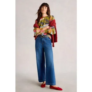 White Stuff Nelly Notch Neck Tee Blue Printed