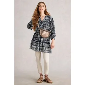 White Stuff Megan Embroidered Jersey Dress Dark Navy