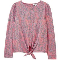White Stuff Tie Hem Top Pink Printed