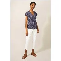 White Stuff Daisy Tile Printed Ss Shirt Blue Print