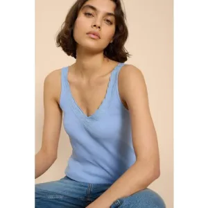 White Stuff Nelly Notch Neck Tee Mid Blue