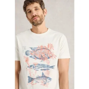 White Stuff Abersoch Fishes Graphic Tee White Print