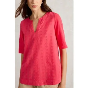 White Stuff Weaver Notch Neck Top Bright Pink