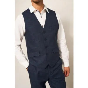 White Stuff Harrison Check Waistcoat Deep Blue