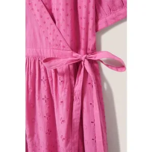 White Stuff Patchwork Broderie Midi Dress Bright Pink