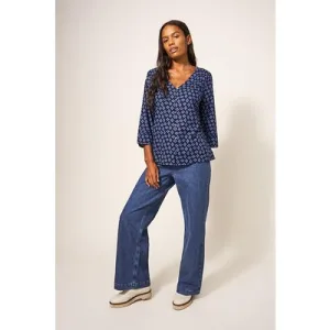 White Stuff Rae Cotton Top Navy