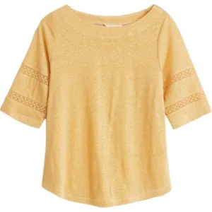 White Stuff Robin Linen Jersey Top Mid Yellow